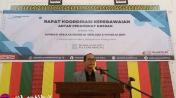 Pj. Bupati Aceh Timur Ir. Mahyuddin, M.Si membuka secara resmi Rapat Koordinasi Kepegawaian antar perangkat daerah dalam lingkungan Kabupaten Aceh Timur, Rakor ini dimotori oleh Badan Kepegawaian Sumber Daya Manusia (BKPSDM ) Kabupaten Aceh Timur, di Aula Diklat Idi, 9 Mei 2023.